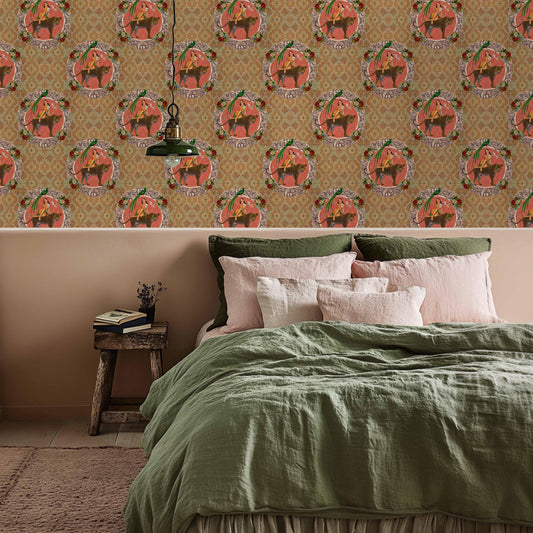 Alice Vintage Wallpaper Orange, leopard wall paper neutral tones, orange pink beige, retro cheetah peel and stick wall decor