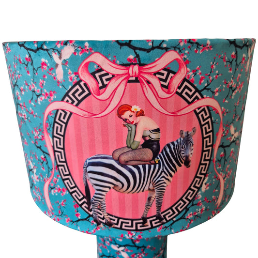 Cocktail Cheetah Tassel Velvet Drum Lampshade Pink and Red Stripe