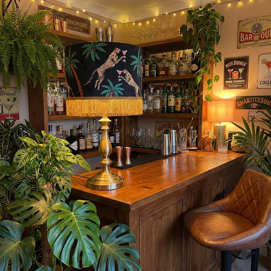 Cocktail Cheetah Tiffany Lampshade Black Linen