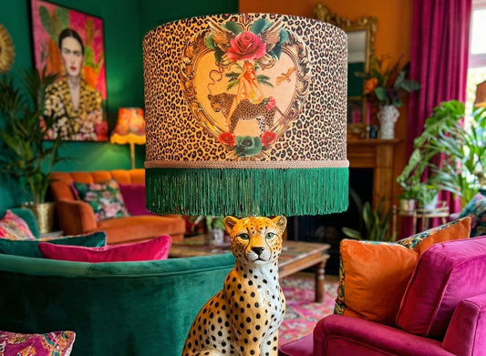 Queen K Cocktail Cheetah Fringed Drum Lampshade Ice Dream