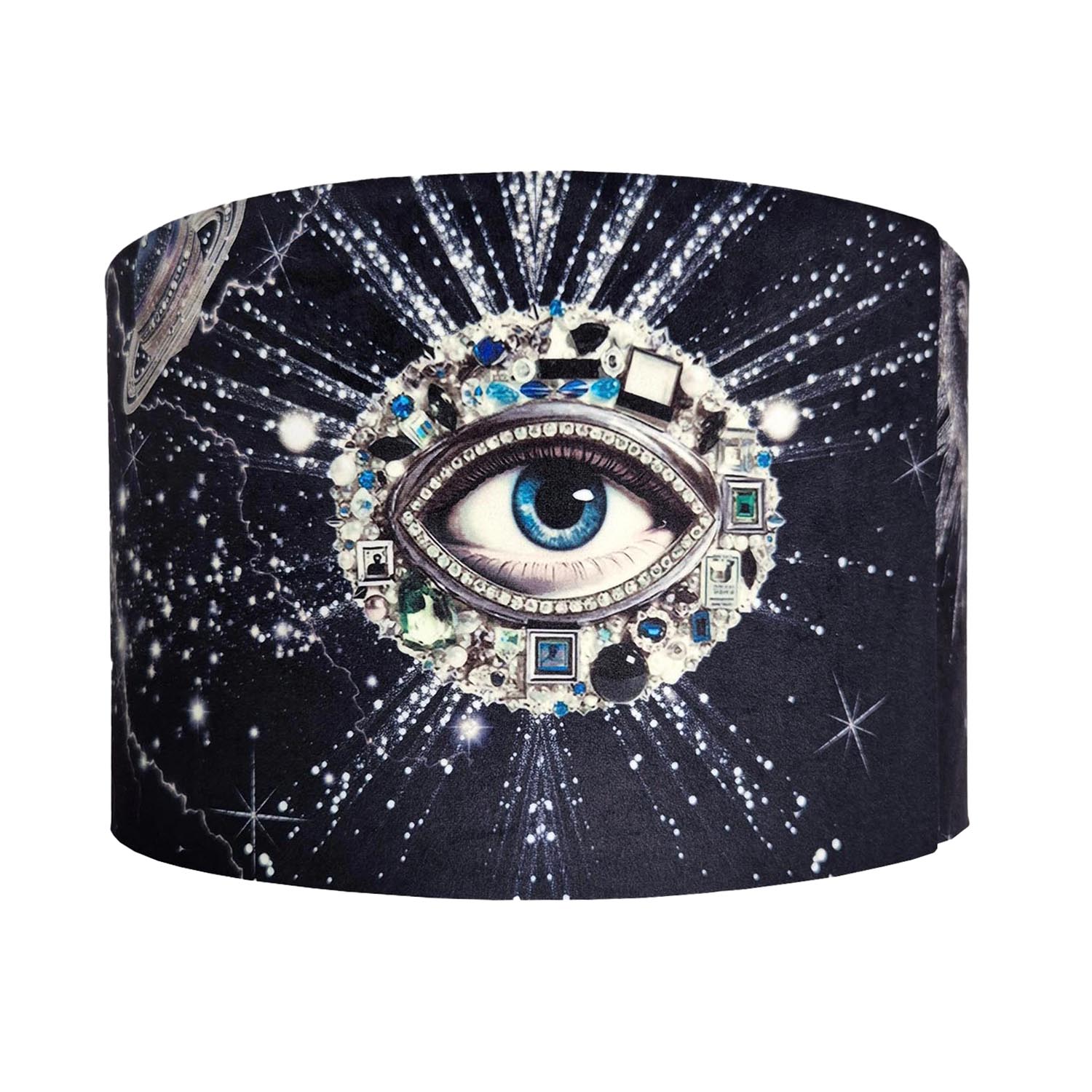 Turn the shade and discover the story unfolding — celestial muses, cosmic symbols, and a watchful jewelled eye, each panel adding intrigue like scenes from a midnight dream.