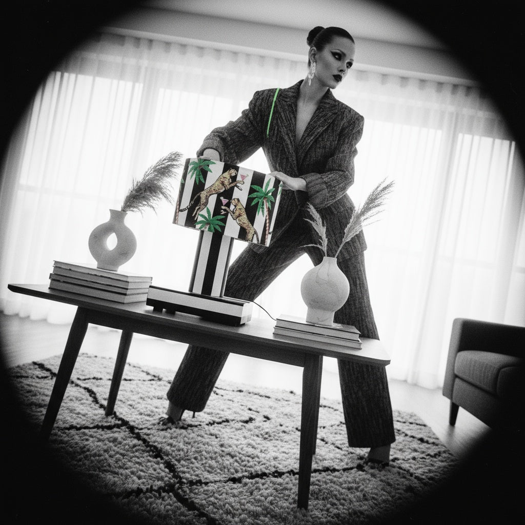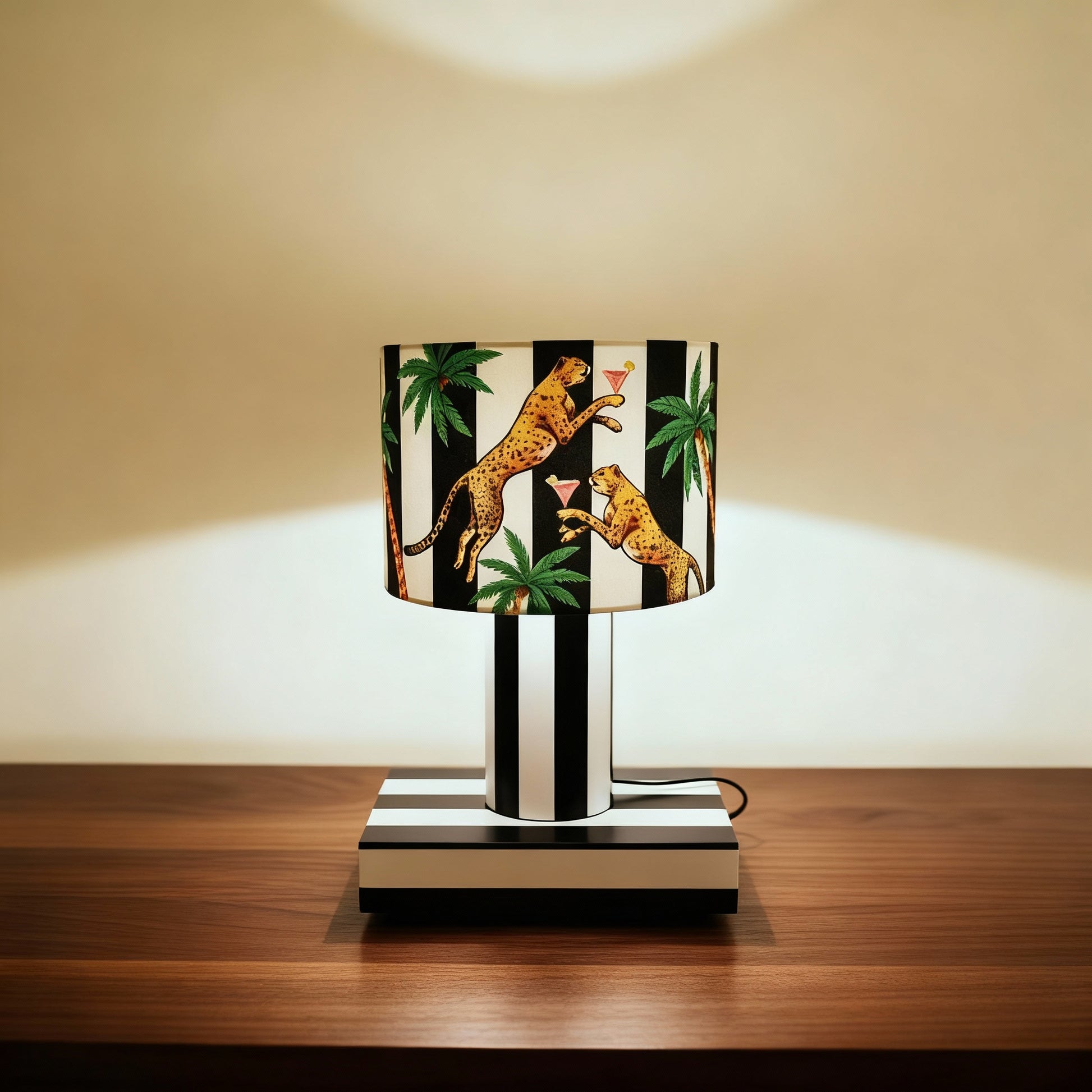 Each lamp is thoughtfully designed with a coordinating striped base that mirrors the vibrant energy of the lampshade. The shade itself is a standout, blending crisp stripes with our signature cocktail cheetah pattern—perfect for those who love statement decor with a touch of glam.