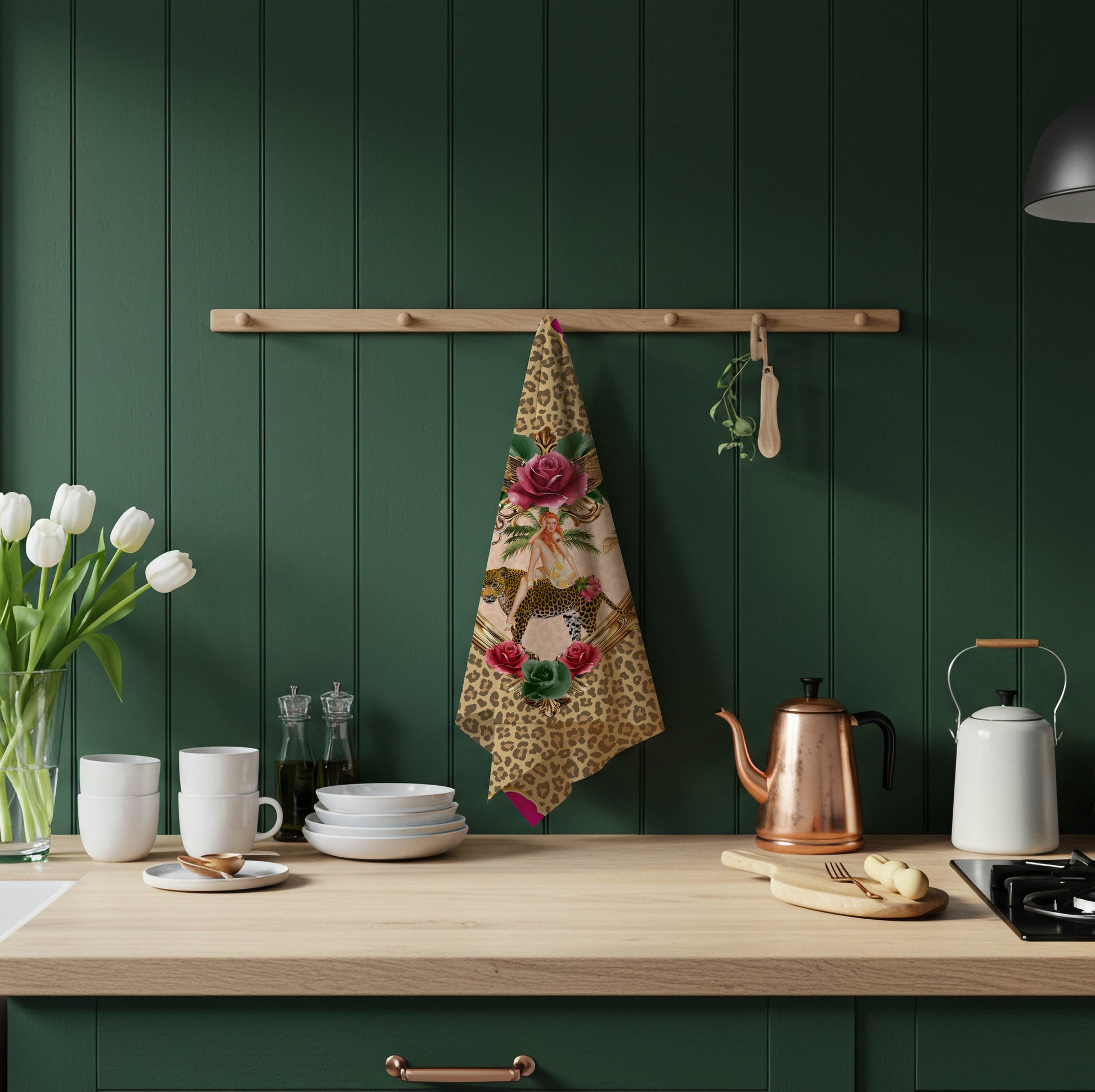 Turn your kitchen into a jungle boudoir with the Tiger Rose Linen Tea Towel — where romance meets rebellion.